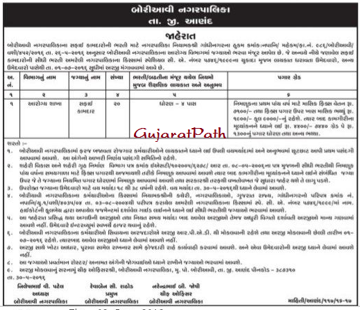 Anand (Boriaavi) Recruitment @ Boriaavi Nagarpalika Recruitment For Workers